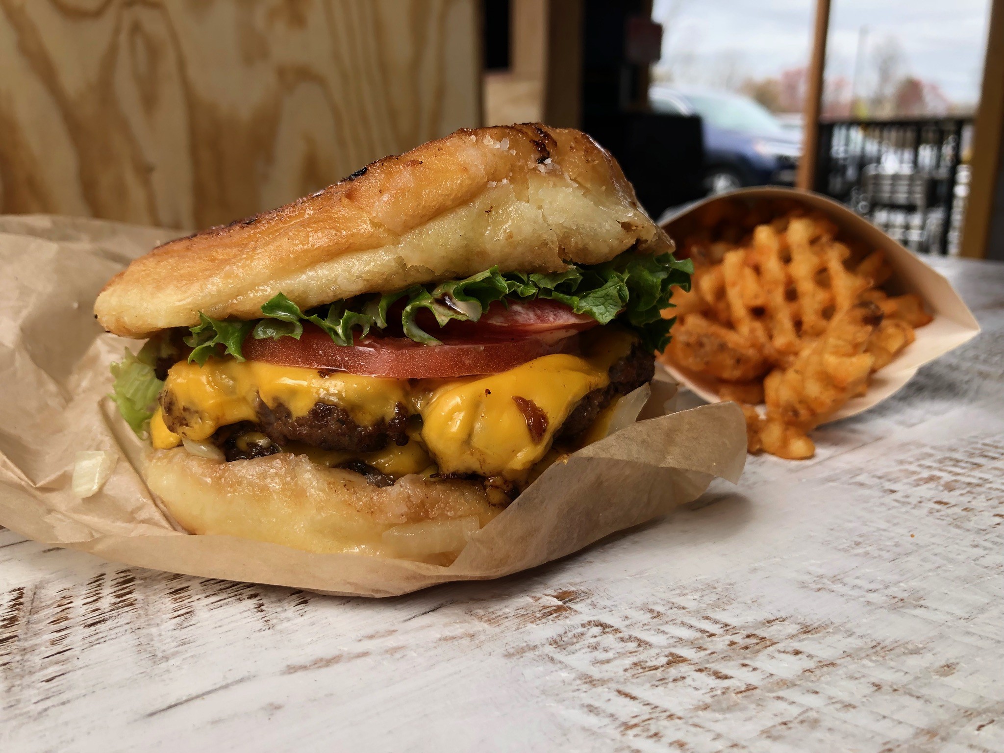 The menu is simple: griddle-smashed burgers in the beef, turkey, crab and vegan varieties, plus waffle fries, milkshakes, soda and beer. Each burger is served with lettuce, tomato, onion, classic ketchup-and-mayo burger sauce and cheese. The hot, crispy waffle fries are available with a heavy dusting of seasonings like sea salt, white cheddar, garlic Parmesan, Buffalo, Old Bay, jalapeño and, for those drawn to heat, the house-made “dragon’s breath,” a spicy Thai flavor. Also served on the side are a couple pickle chips and a container of Luther sauce, a tangy, dill-based aioli for dipping created by manager and longtime Sugar Shacker James Henderson. Lettuce wraps are available upon request for a gluten-free option, and vegans will be pleased to find dairy-free cheese, burger sauce and milkshakes on the menu, in addition to the wheat-and-potato-based Impossible Burger patties.