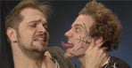 In this production, Mephistopheles is selling Faustus, not with fantastic displays of magic, but with the much more economical use of illusion. With two actors and some Styrofoam playing a cast of thousands, it’s a trick that works just as well on the audience. S