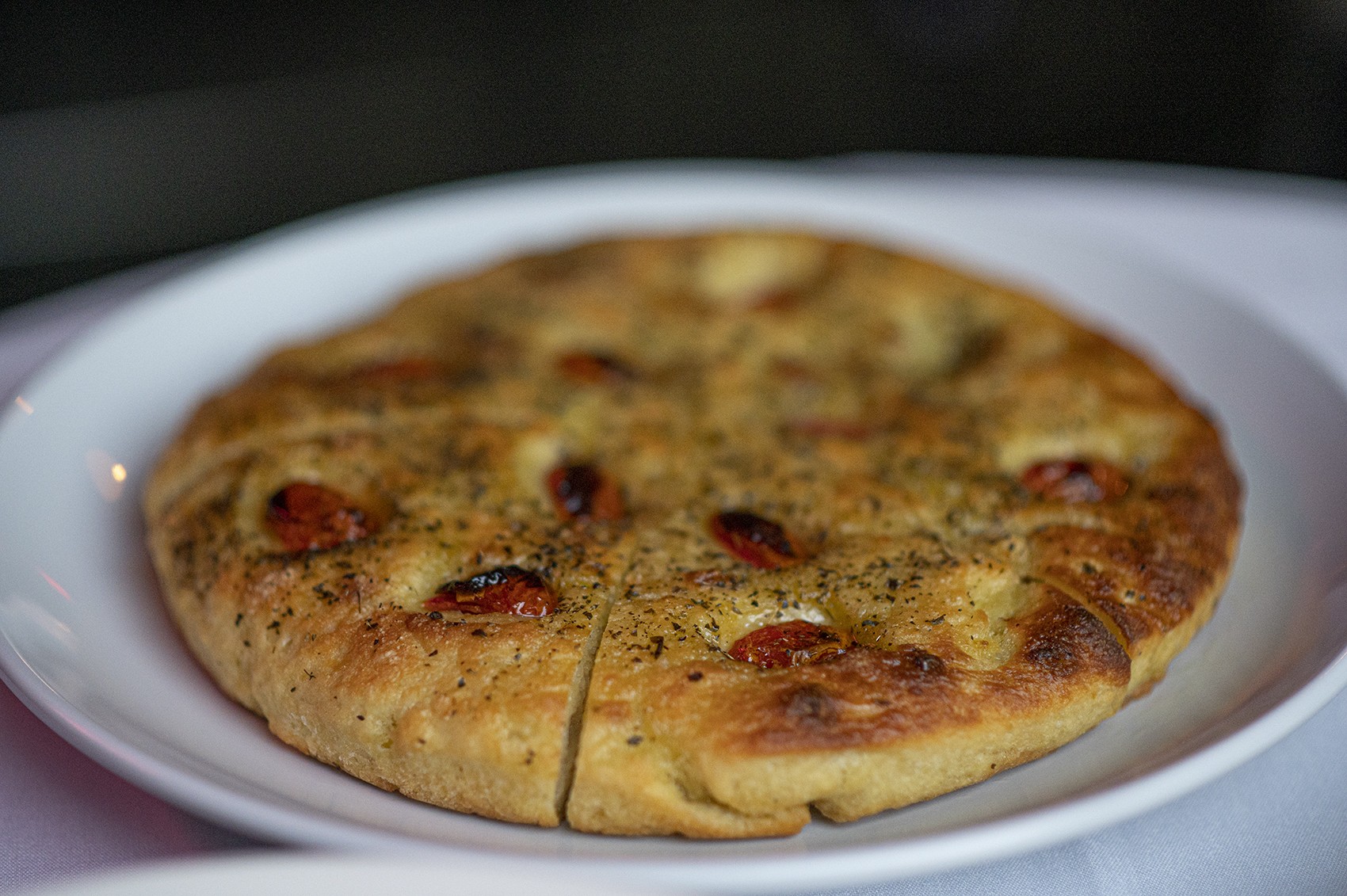 James: An ambitious move to that location would be a task for anyone; coming from outdoor dining and order pick-ups to a space that is overwhelmingly dark and uninspiring. But the identity of Sprezza is not yet being fully told. A more personal experience gets lost in the whitewashing of an enormous dining space with white table clothes and booths that don’t celebrate any customs or ways of life. Even with a view behind the curtains with a passthrough into the kitchen, the main dining room feels sterile and unwelcoming. You can feel lost in the pseudo-formal dining room, which longs for more curation and genuine expression.