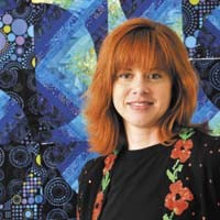 In January, when Koplin agreed to head up the children’s quilting project for Mary Munford Elementary, she decided she’d better learn to quilt. As she learned the craft on the fly, her gift for pattern, layer and texture in paint was easily translated to fabric, and the school-wide quilting project was a success. She is expanding her range with layering and fabric to include both hand appliquĂ© and unique vessels layered with foil, wrapping paper and wall paper that is sandwiched with acetate and cro-