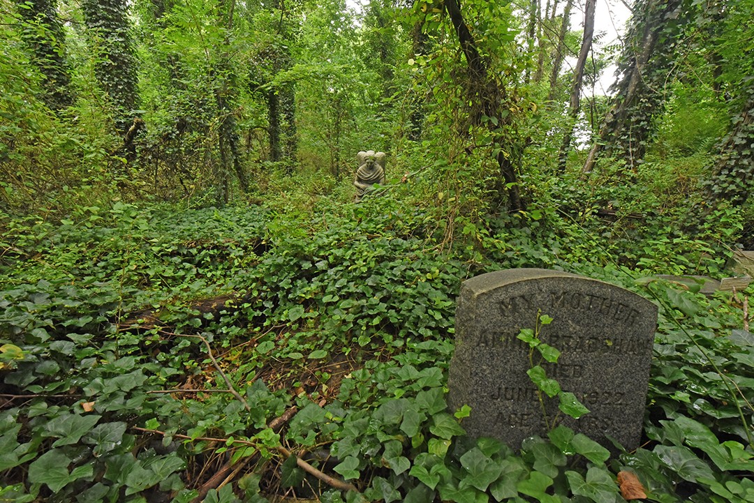 While working on Style’s recent cover story, The Ruins of Richmond, I spent a few hours at Evergreen Cemetery in Richmond’s East End. A visit to this cemetery provides for a surreal experience, where thousands of graves are hidden by vegetation within a couple of hundred yards off Interstate 64. The graves, some more than 100 years old, emerge from the undergrowth, silent memorials to the dead and modern-day reminders of those forgotten. I was drawn to this particular grave because of the lone strand of vine that reaches up toward the words “my mother” and to the foreboding presence of the vegetation.