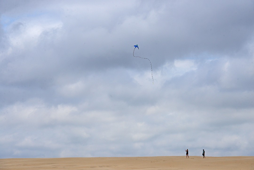 The dunes in the 426-acre park are some of the tallest in the Eastern United States. On the ridge line were two people flying a kite where the big open sky and dunes made for a dramatic composition.