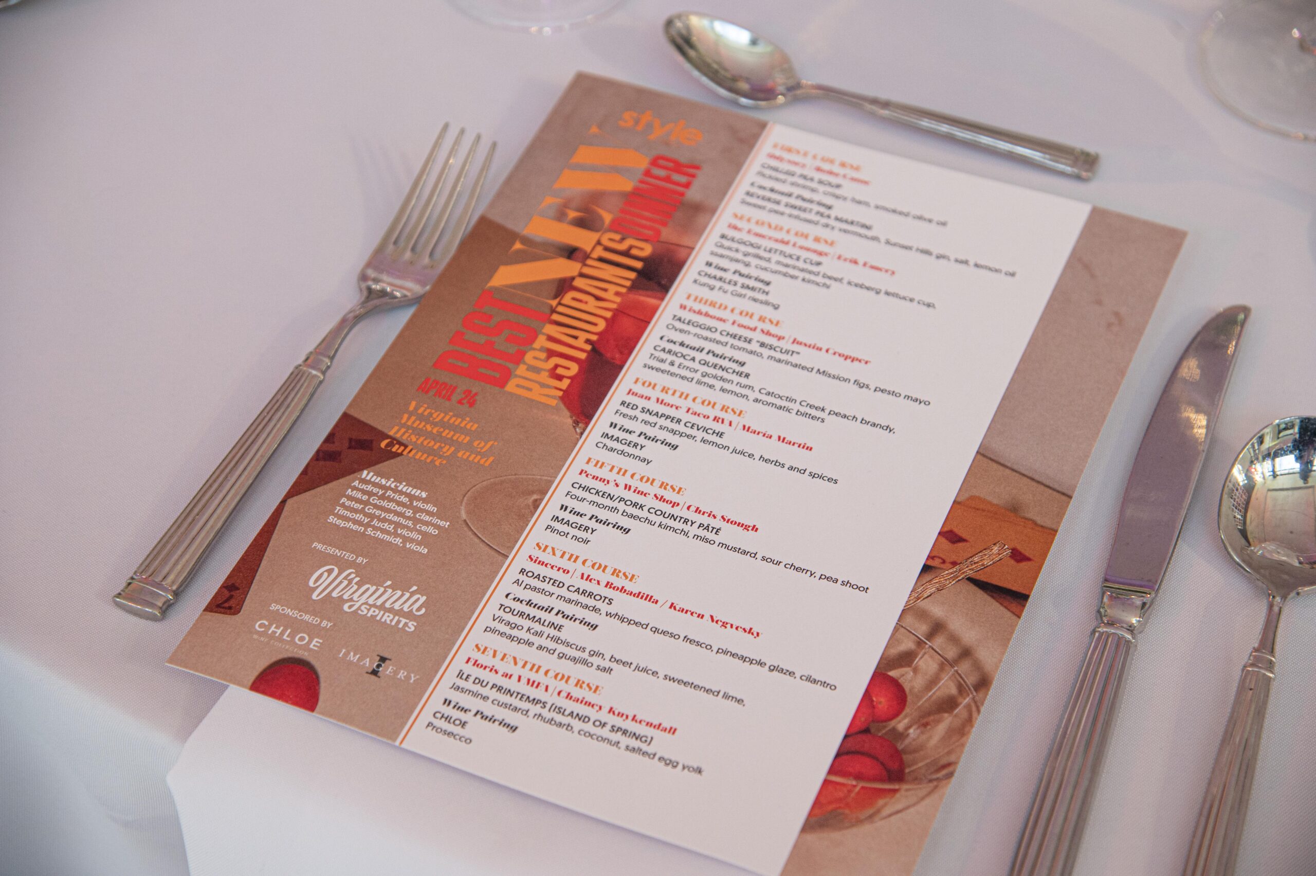 On Wednesday, April 24th, our Best New Restaurants Dinner, presented by Virginia Spirits, brought together some of the city’s most prominent chefs and best new restaurants for a one-of-a-kind, seven-course dinner at the Virginia History Culture Museum.