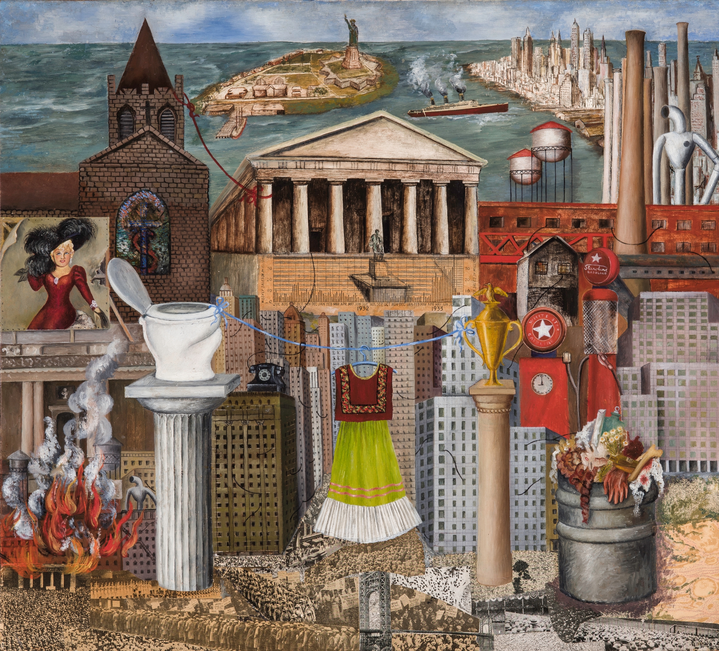 One of those is the striking, and somewhat macabre, “The Suicide of Dorothy Hale,” a painting meant to commemorate the last days of a socialite and aspiring Hollywood star who had taken her life [by jumping off the Hampshire House building in New York City]. “It had been commissioned by Clare Boothe Luce, the managing editor of Vanity Fair. She thought it would be a posthumous portrait she could give to Dorothy Hale’s mother. Instead, this was a painting of this poor woman dead in a pool of her own blood.”