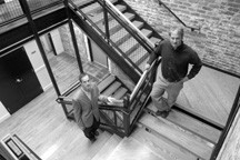 The original building, a tobacco factory, was built in 1853. Since then, it has been used as a Civil War hospital — in which about 300 men died, sparking spectral stories — the Pohlig Bros. Box Co. and a warehouse for Showcase, the department-store-inventory liquidator. The structure acquired 12 additions over the years, and Stanley and Shield’s copper-sided rooftop apartments were the 13th. Bad luck? Well, Shield says, “no ghosts in that part yet.”