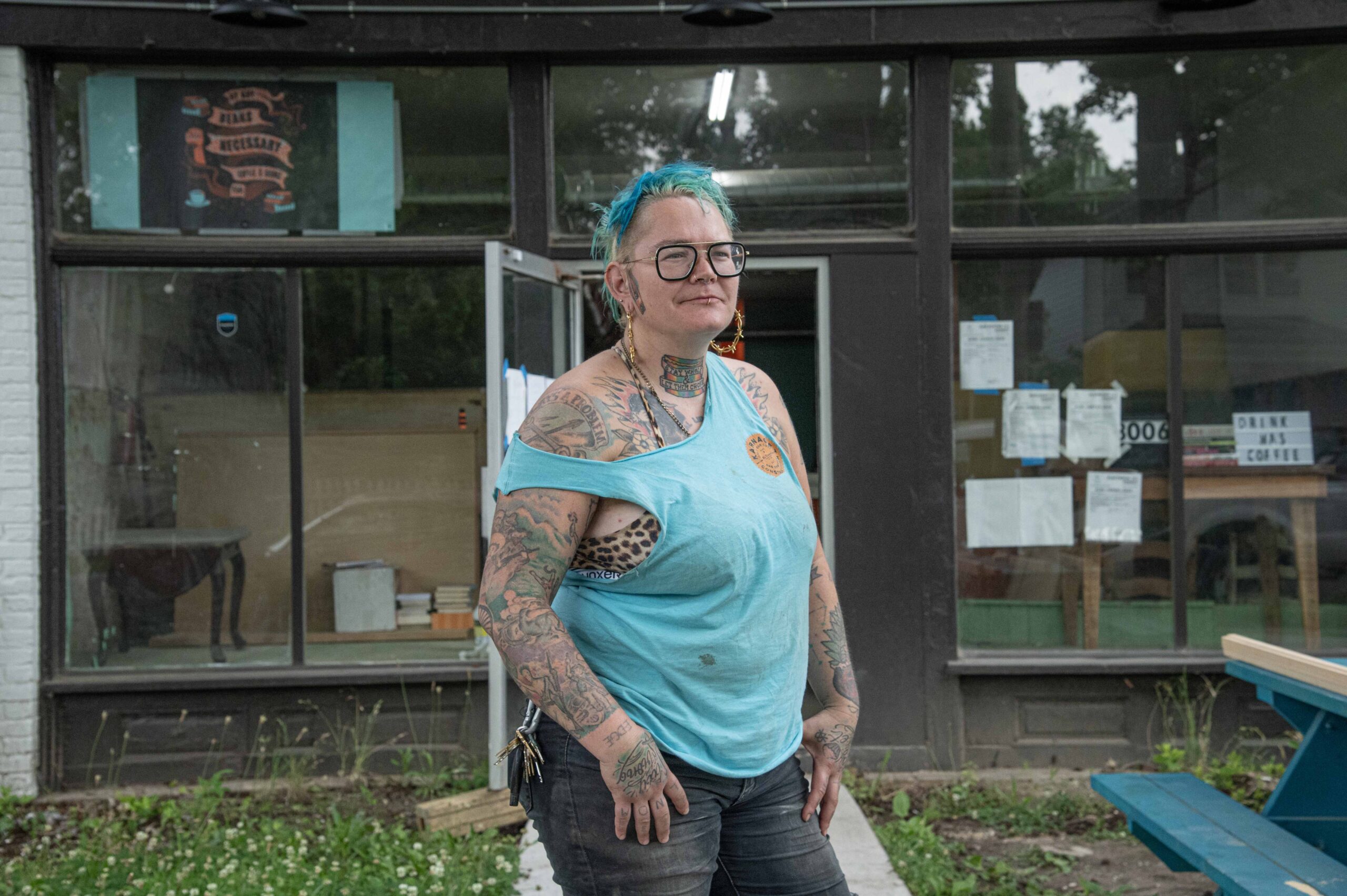 Karnage, who used to sneak out of the house as a teenager to cook with Food Not Bombs, is infusing their radically inclusive approach into this new venture. In addition to catering to vegans, vegetarians, omnivores, and gluten-free folks, they plan a “pay it forward” option for anyone to purchase a meal for someone who can’t afford one. They also recently acquired 500 pounds of coffee beans from a neighboring thrift shop and plan to offer donation based, free if needed, drip coffee. By Any Beans will also be a sober spot, a godsend for those looking for a gathering place that doesn’t revolve around booze.