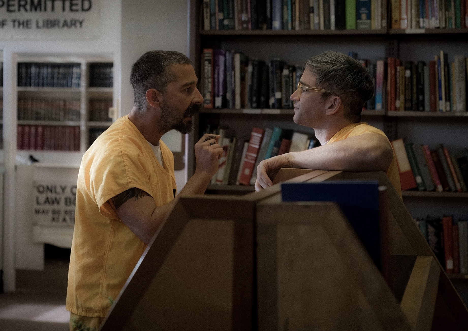 The next act finds Henry in jail and sharing a cell with Gene (Shia LaBeouf), who proceeds to give another monologue that—after many detours— reveals itself to be another referendum on Henry’s gullibility and dwarfed masculinity. For act three, Henry holds hostage the prison librarian (Dominic Hoffman), which pivots on a monologue that, you might have guessed, is also concerned with Henry’s gullibility and thusly dwarfed masculinity. LaBeouf and Hoffman give forceful performances, and Hoffman’s aria of Mametese is predicated on a daring joke, but by this point the pleasure of Mamet’s absurdities has long faded.