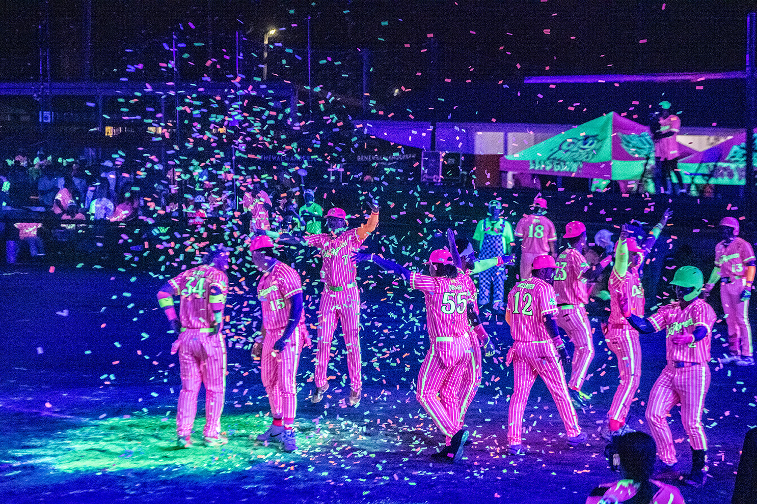 But one need look no further than the Coastal Plain League and Martin’s Tri-City Chili Peppers to see this old-school pastime in an all new light. Starting last season, under Martin’s leadership, the Chili Peppers gave baseball the modern glow-up many fans have been waiting for, but nobody could have seen coming. [A recent NBC News story reported that, in its second season, “Cosmic Baseball has been flooding social media feeds and currently boasts a 300,000- to 400,000-person waitlist” while Major League Baseball has been taking notice and backing the initiative.]