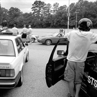 A white Nissan Sentra with a blue “4” painted on the side pulls up to the back of the line of cars. The driver tugs at the straps of his racing helmet as an announcer’s voice squawks over the P.A. On the course, a tan Civic CRX twists around the asphalt as fast as its driver can take it. Cars of all makes, models and, it must be said, racing qualities, rumble and sputter across the pavement against the clock. There are the highly modified vehicles and stock cars off the street, from tricked-out Mustangs with softball-bat sized, double chrome tailpipes to conservative Altimas with that new car smell.