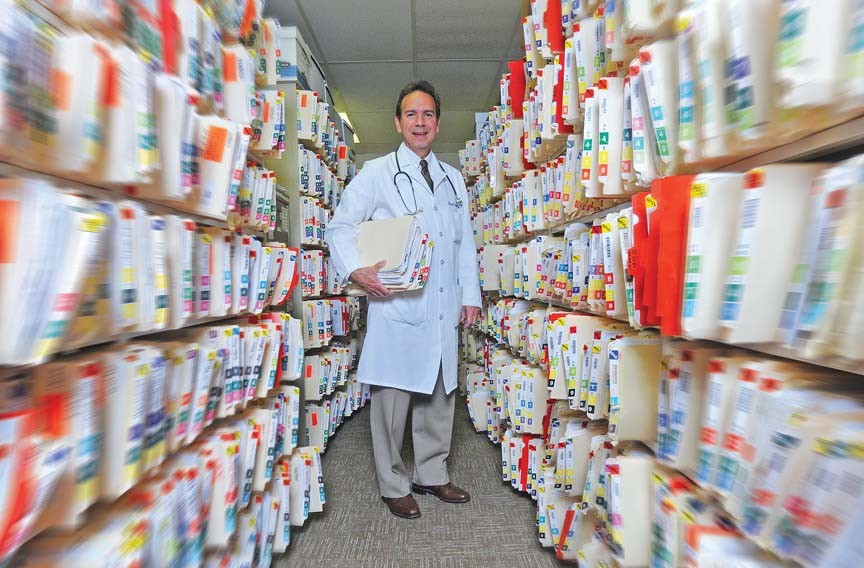 Thousands of patients’ paper files, now being digitized, are the lifeblood of Dr. Rick Gergoudis’s family practice.
