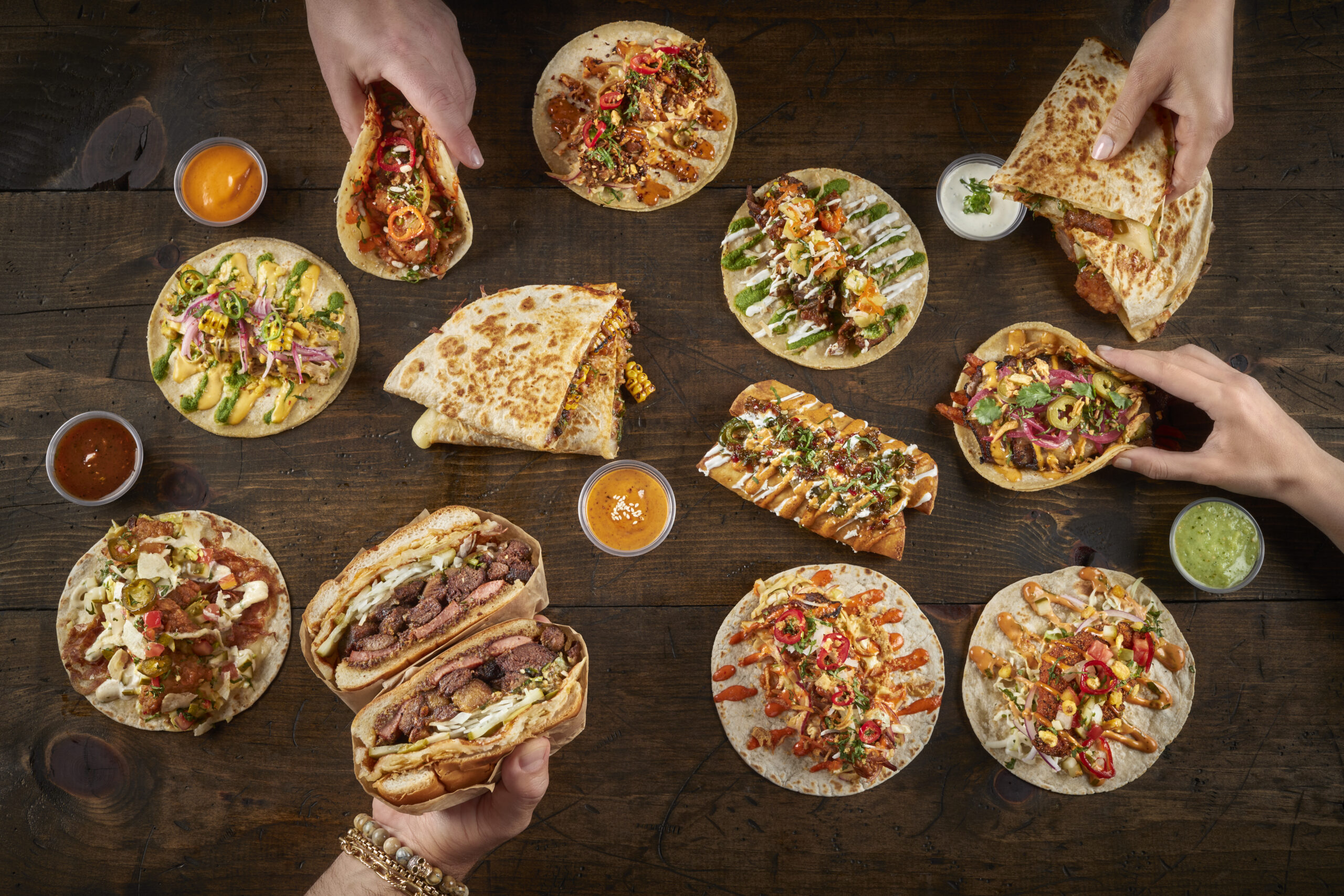 Helmed by James Beard award nominee Chef Victor Albisu, the menu features nontraditional tacos, taquitos, empanadas, and quesadillas such as the Scott’s Addition (made with local beer-braised brisket, sweet potato fries, caramelized onion and white barbecue sauce in a corn tortilla) and the Chirley Maclaine (a torta with avocado, cucumber, onions, and garlic herb cream cheese). You can check out the entire menu here.