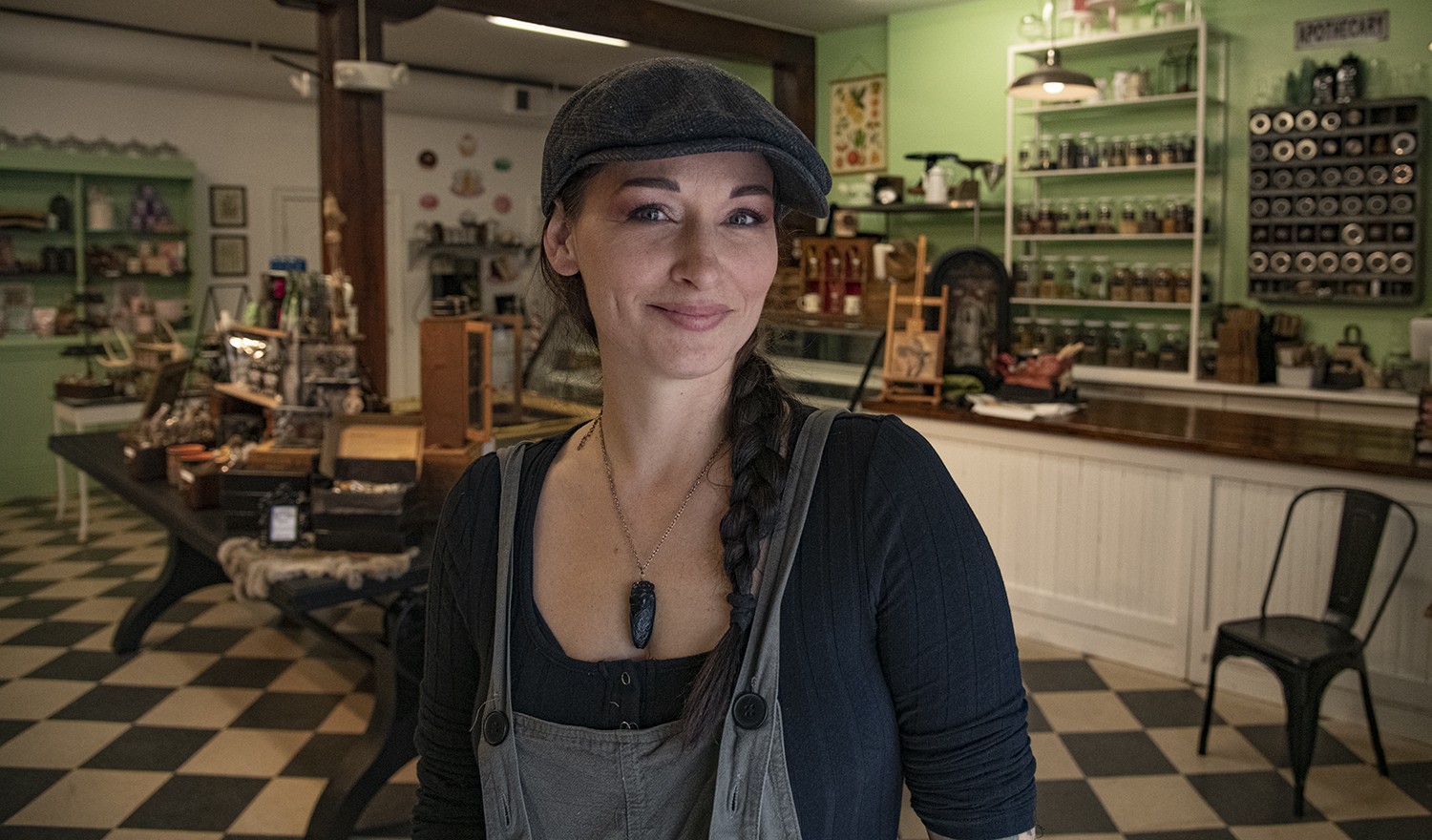 During the pandemic, when business slowed to a crawl, Robinson subtly converted her bakery from a “French patisserie-cum-1950s-sweet-shop” theme into more of an apothecary to reflect both the dark times of quarantine and her new interests in herbalism. “I always wanted to better understand nature and the plants,” she explains of the thematic transformation. “I went to school during the pandemic while running the space for herbalist studies. The aesthetic of Sweet Fix used to be more geared toward what I thought people wanted to see, and I stopped worrying about that and made it what I wanted it to be. So now it’s an apothecary, and you see a little bit of my dark side intertwined into the space.”