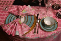 The seven local designers who participated chose Steuben sculptures and used them as themes for their tables. The inspirations varied quite a bit, including a glass frog prince figurine, a block of glass with an etched New York skyline and a Georgian-style vase. The results were amazingly inventive, taking on drastically different moods.