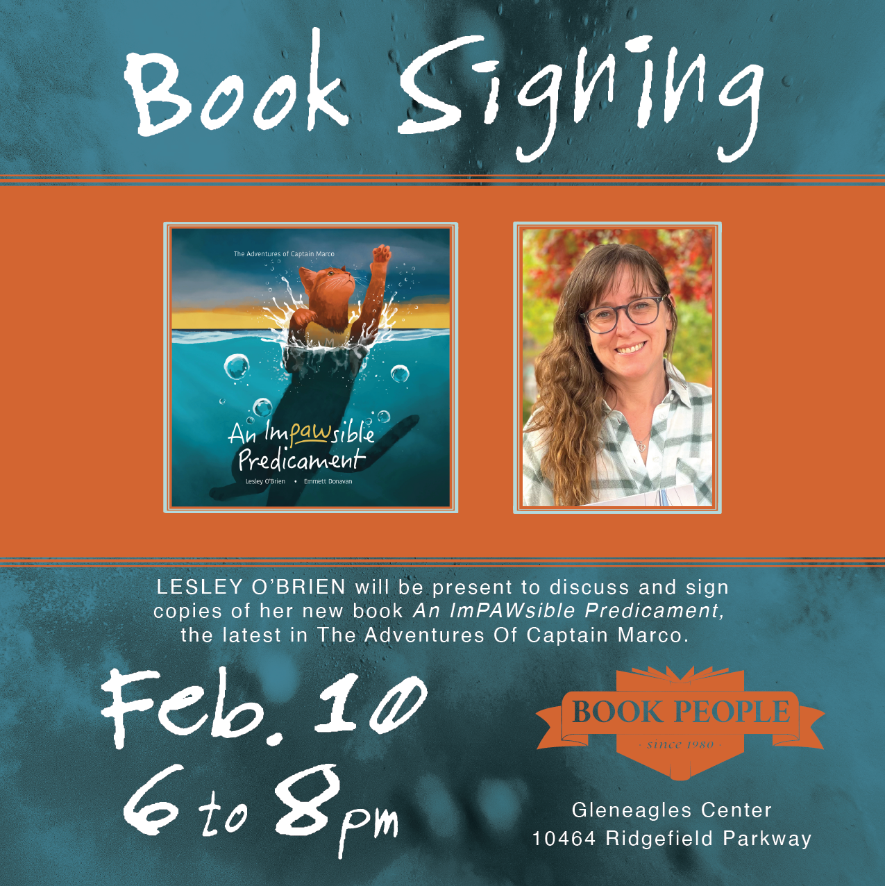 Lesley O’Brien returns on Tuesday, January 27th at 6pm with the second book in the Adventures of Captain Marco series, An Impawsible Predicament.