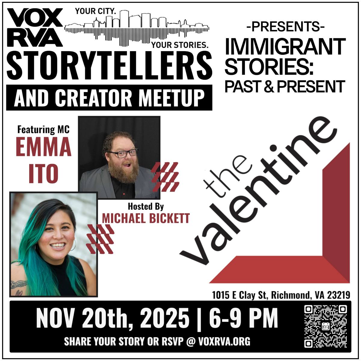 Immigrants founded and built our nation. On November 20, VOXRVA and the Valentine Museum invite the community to an unforgettable evening of Immigrant Stories: Past and Present, a live storytelling event celebrating the courage, resilience and hope of those who have made Richmond—and America—their home.