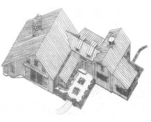 The resulting complex, which is being constructed by McGuire, Hearn & Toms of Manakin, will balance old and new. Aside from the frame and exposed beams, the house will be new. The floors will be made of new, wide pine planks. The walls will be white plaster, the vaulted ceiling will be boarded, and the roof will be cedar-shake.