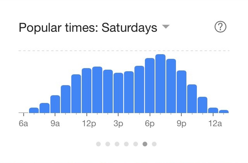 A few obvious things stuck out — Fridays and Saturdays are jam-packed. Dinnertime — usually around 6:30 to 8:30 p.m. — is not the time to go anywhere, according to Google.
