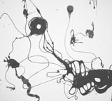 This paint in pitched battle is an interesting aspect of her work mainly because it speaks to where contemporary painting has been taken by poured enamel artists such as Trepanier. While many painters of the past and present seek to gain quiet harmony and balance on their canvases, Trepanier encourages her paint splotches to duke it out to the death. — Jason Coates