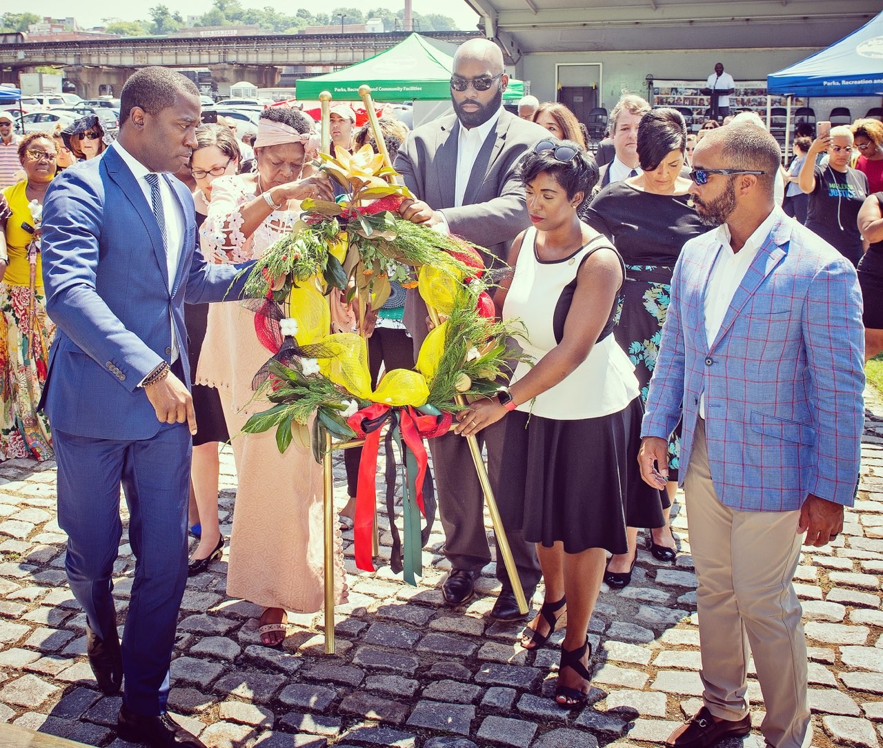 “Today, sons and daughters of enslaved Africans stand united,” he says. “Not bound by shackles, but bound by a common cause, to ensure that the hopes and dreams and desires of our ancestors come to fruition.”