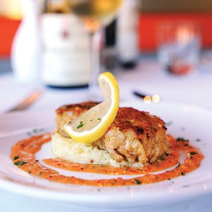 Another week featured squash. On the discovery menu, a creamy pumpkin soup was matched with a dry, fruity white 2009 Cuvee Hortense Entre Deux Mers, while a lamb meatball over spaghetti squash earned a ruby red 2009 Chateau Malbec Bordeaux. A grilled flank steak got a 2007 Chateau Lestrille Bordeaux, and roasted red flounder, moist and perfectly cooked, stuffed with crab and butternut squash and brightened by lemon cream sauce, was perched atop spaghetti squash. The fish was paired with a white 2009 Chateau Petit Moulin Bordeaux. To finish, an apple strudel or a crusty apple tart were washed down with a crAcmant, another French sparkling wine.