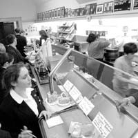 “He’d come in here and eventually convince three or four other people to order the thing while they were standing in line,” she says. The same thing happened with Sen. Joseph Gartlan, who wouldn’t order anything but the chicken salad on rye, lined with country ham and tomatoes. The sandwich now bears his name.
