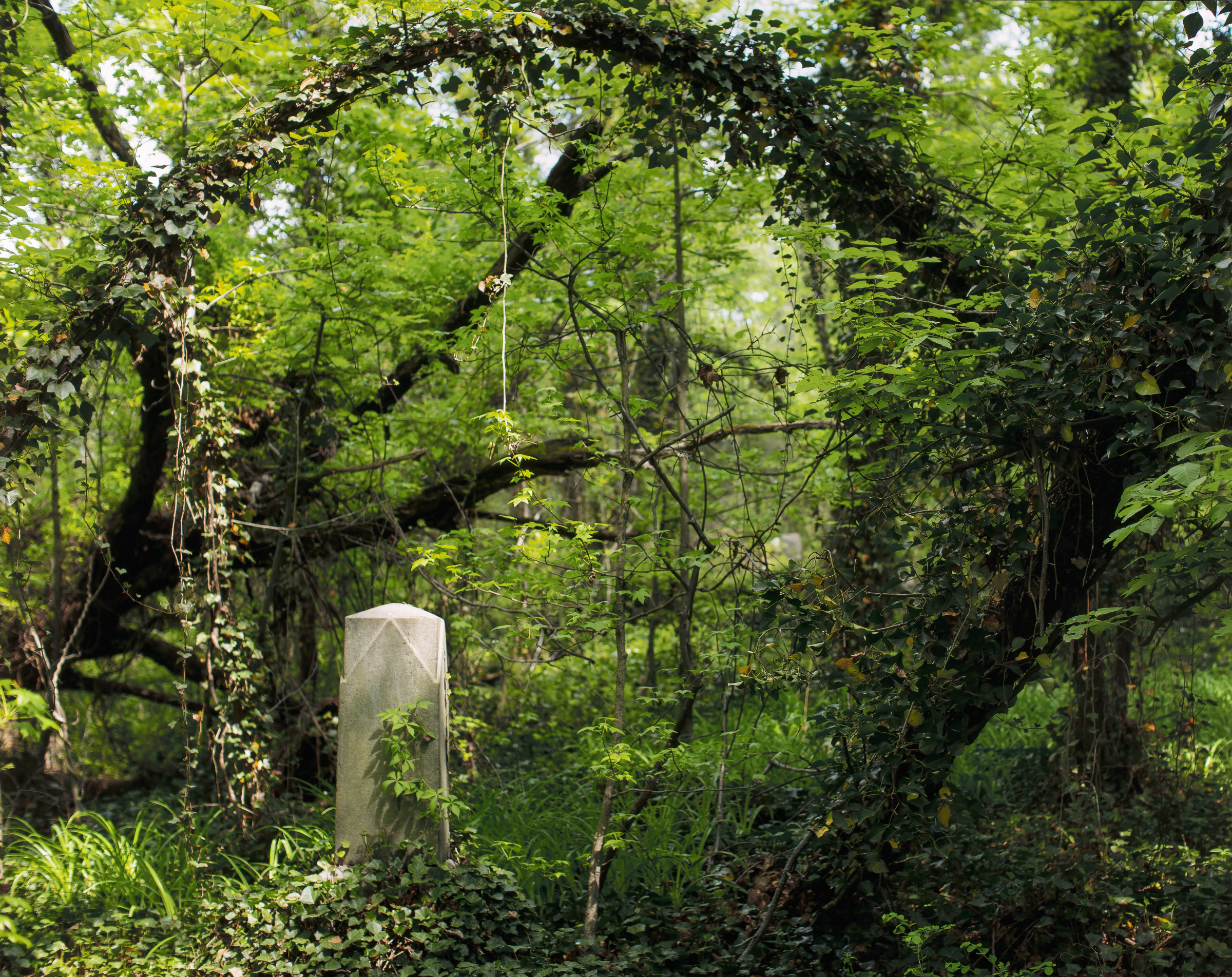 East End Cemetery, founded in 1897, was a burial ground for an estimated 10 to 13,000 Black Richmonders. By the middle of the 20th century, it had reverted to nature because of Jim Crow policies that starved it of resources and marginalized the community it served. Palmer’s “Evergreen Cemetery, Richmond, Virginia” (2017) shows a densely overgrown landscape with only the merest suggestion of a path and no clear indication of gravestones anywhere. It’s striking in a “Mother Nature-goes-wild” sort of way, but only the photographer could identify the location.