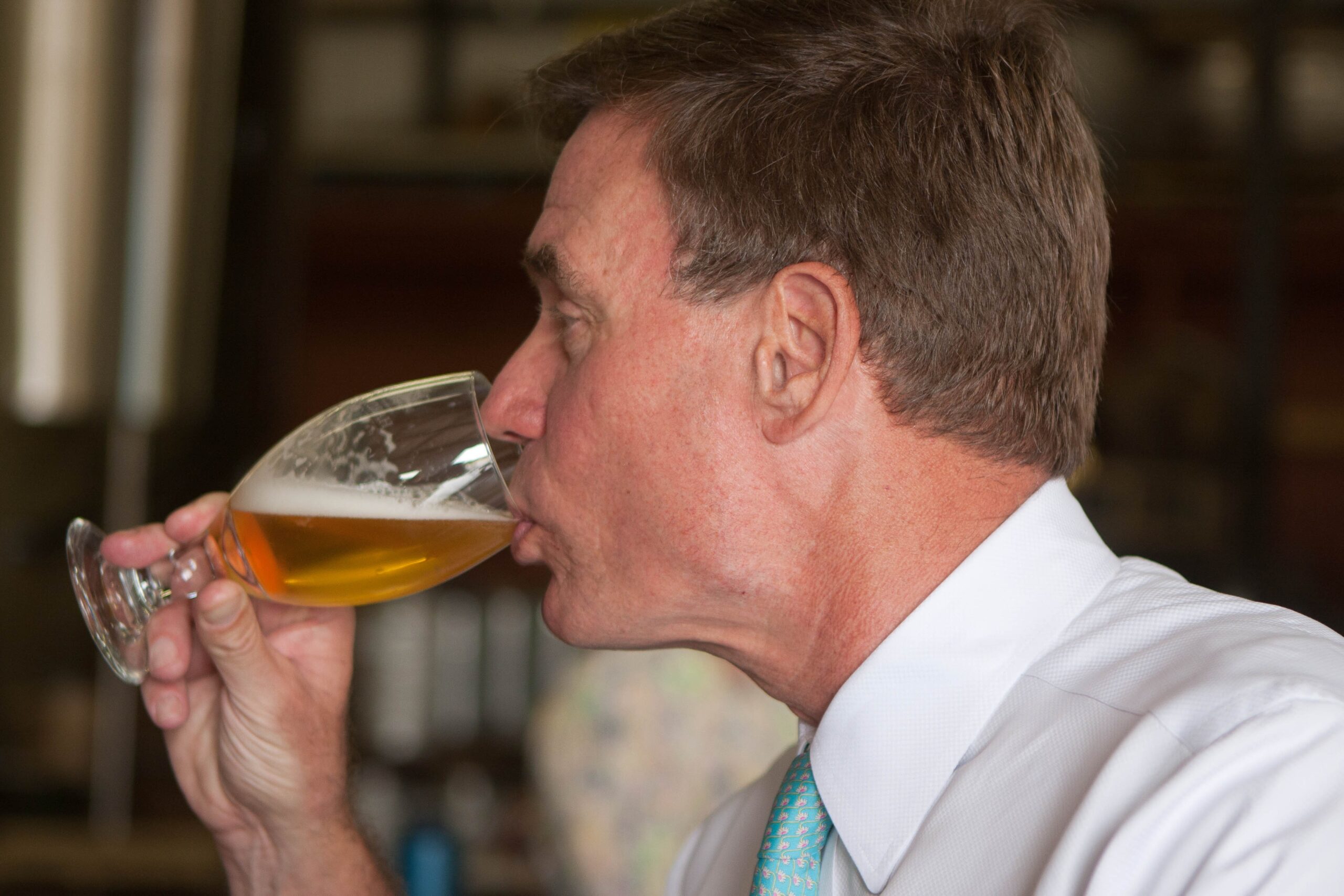 It was a bit less glamorous than it sounds, but U.S. Sen. Mark Warner had at least two beers today during a 10 a.m. visit to Hardywood Park Craft Brewery.
