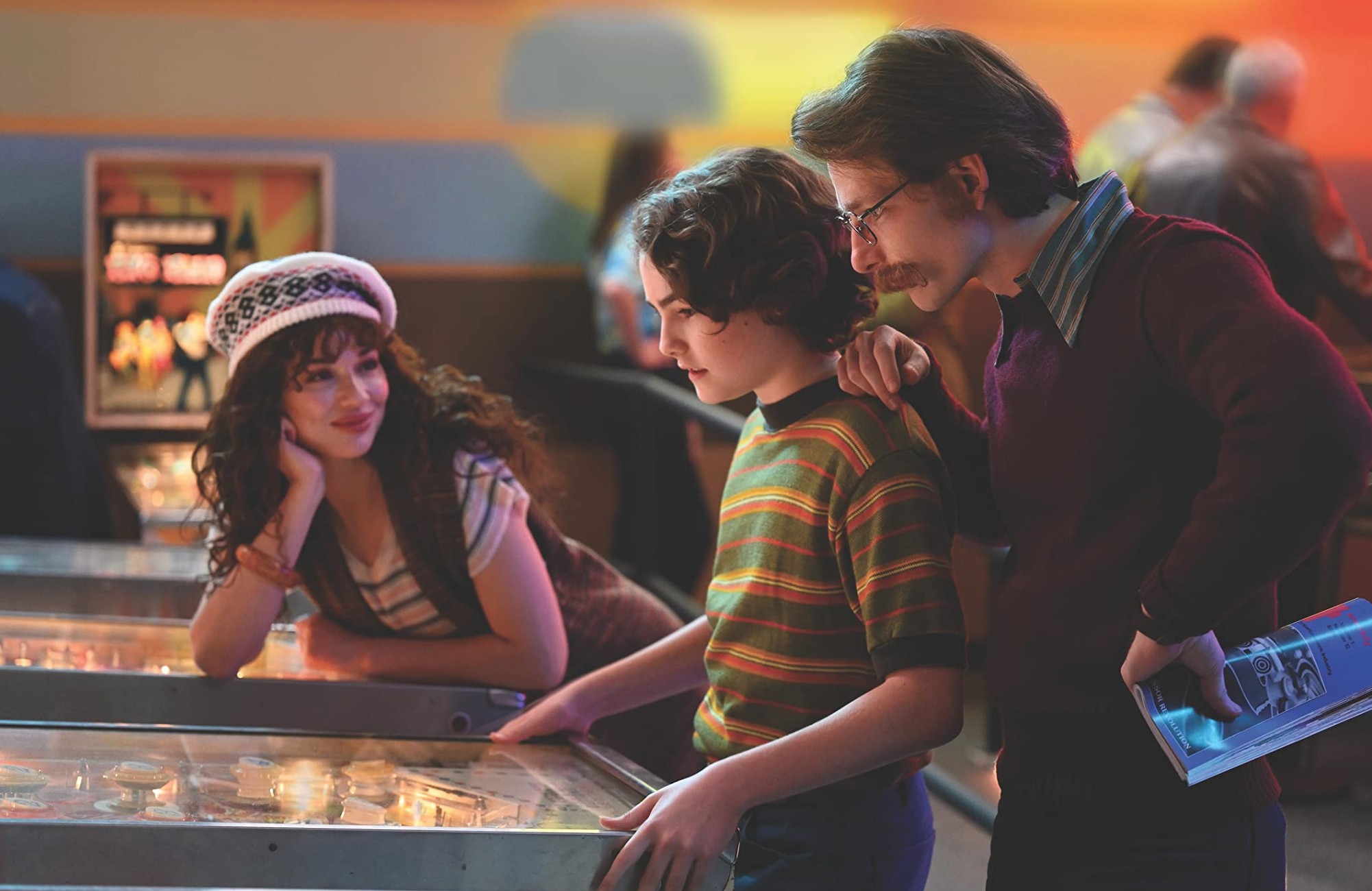 Wanting to be a writer and having no clue how to go about it—with several unfinished novels under his belt— young Sharpe rediscovers a soothing distraction from his college days. In New York City amidst the wreckage of a failed marriage and business, Sharpe drifts into an adult bookstore for the illegal pinball machine. The Braggs don’t overdue the poignancy of these scenes. Amidst feelings of failure and the maddening subjectivity of writing, pinball is tactile. Either you’re good or you’re not, and the Braggs’ script includes evocative specificities as to how the machines work, and crisp, funny dialogue. Applying for a job at Gentlemen’s Quarterly, soon to be known as GQ, Sharpe meets and begins to tentatively romance Ellen (Crystal Reed) and bond with her 10-year-old-ish son, Seth (Christopher Convery). Soon, Sharpe’s interest in pinball leads toward a book that he can finish, and the new project and new domestic life give him direction. It all happens rather quietly, just as how the lucky look back to discover on certain days that, “oh shit, things worked out.”