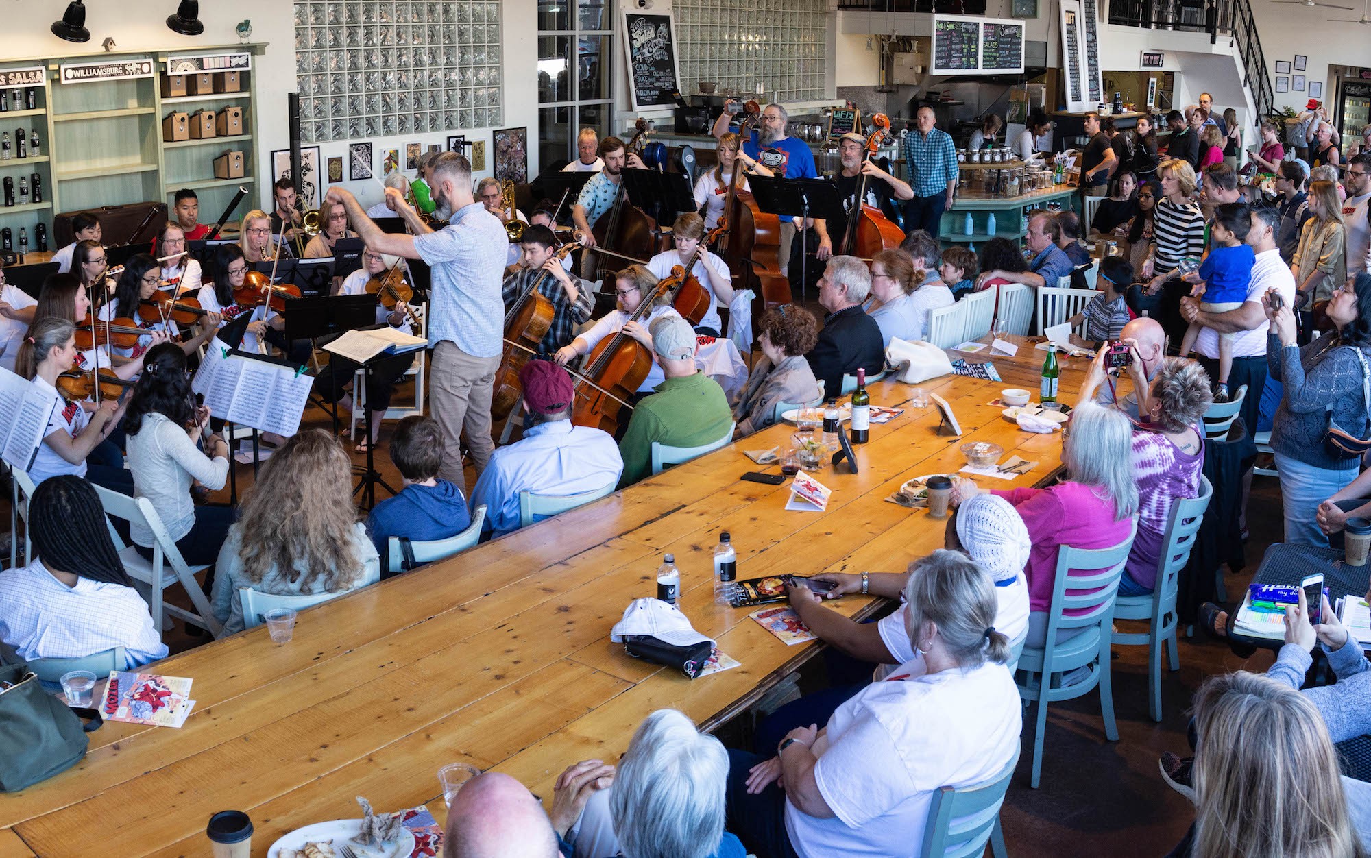 This year’s musical selections were made partly based on the spaces available. Church Hill offers many intimate spaces, so the focus is primarily on chamber music. “We love to give creative freedom to our musical artists, so the first half of the day includes pieces selected by the performers who’ll be playing them,” she says. “The latter half of the day, however, was programmed with specific themes in mind.” That means that the Caffeine, Conniving and Cosi event at Riverbend Roastery was programmed specifically because it takes place at a coffee shop. The 4 p.m. concert features Mozart’s chamber music performed by local small ensembles, and the 6 p.m. concert features soloists playing wind instruments with an orchestra.