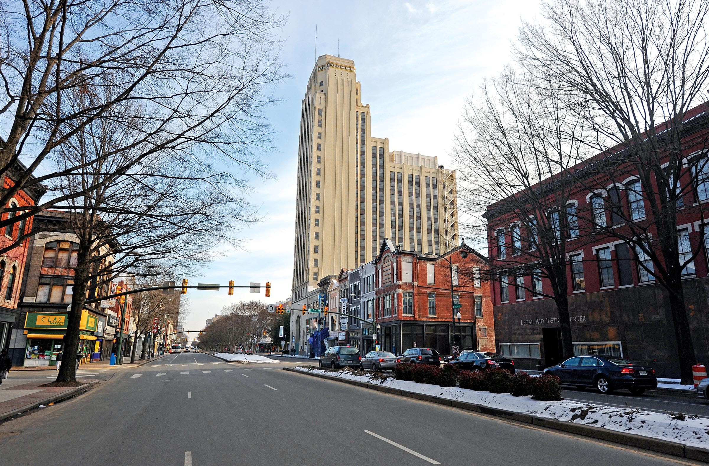 Despite the influx of new restaurants and nightspots, the area around the Central National Bank building at Broad and Third streets is transitioning. One a blustery recent day last week, a man sold trinkets from a folding table on the sidewalk. Several storefronts along Broad remain boarded up as they have been for years. A flock of VCU students wearing hard hats listens to a professor lecture about real estate development from the inside of a gutted building.