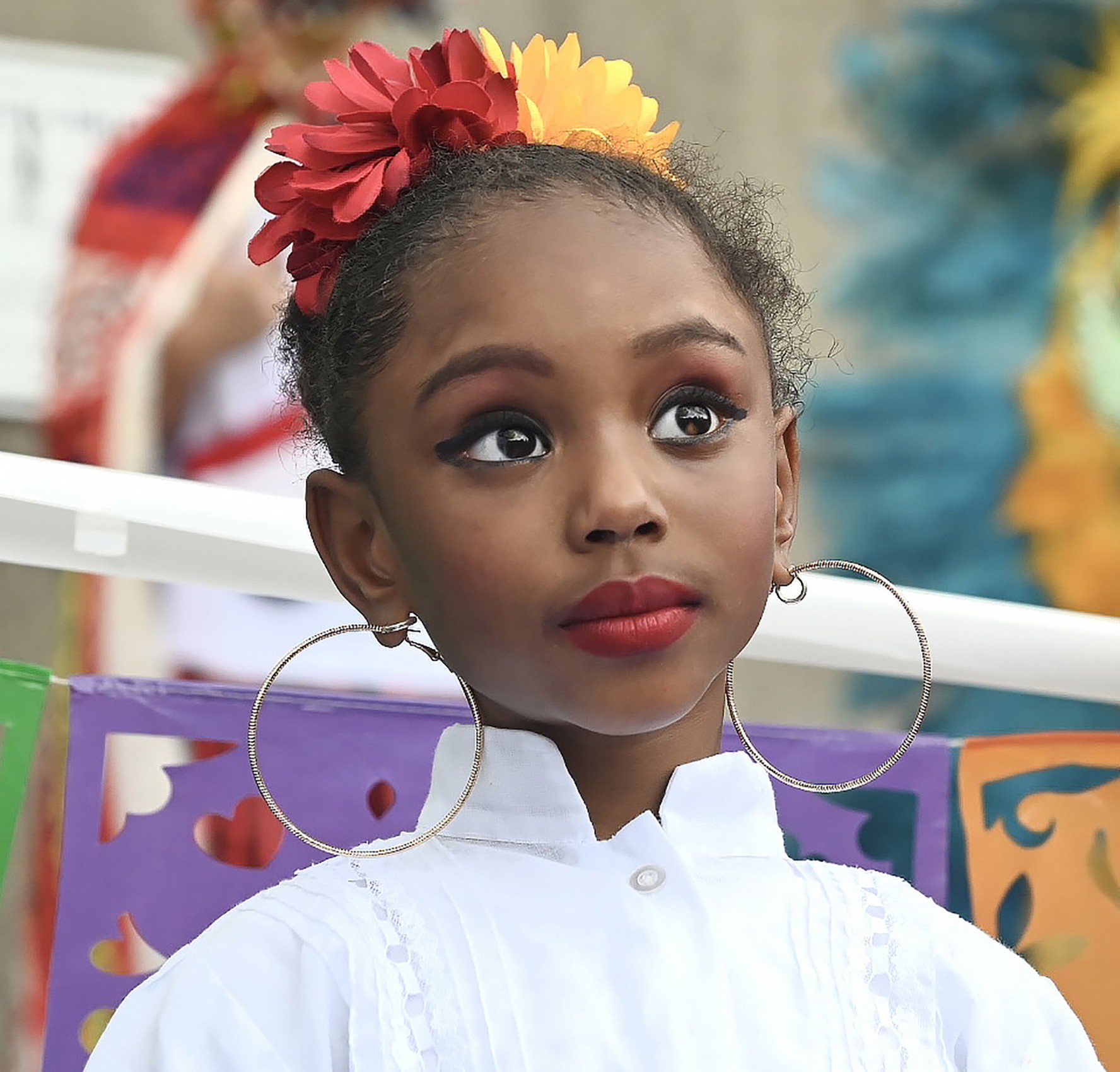 Photographer’s note: Anthony’s big bright eyes, perfect lipstick and hoop earrings caught my eye. I waited for a moment when the light showed her eyes. She was incredibly composed for a small child often surrounded by adults in swirling skirts and a huge crowd of onlookers.