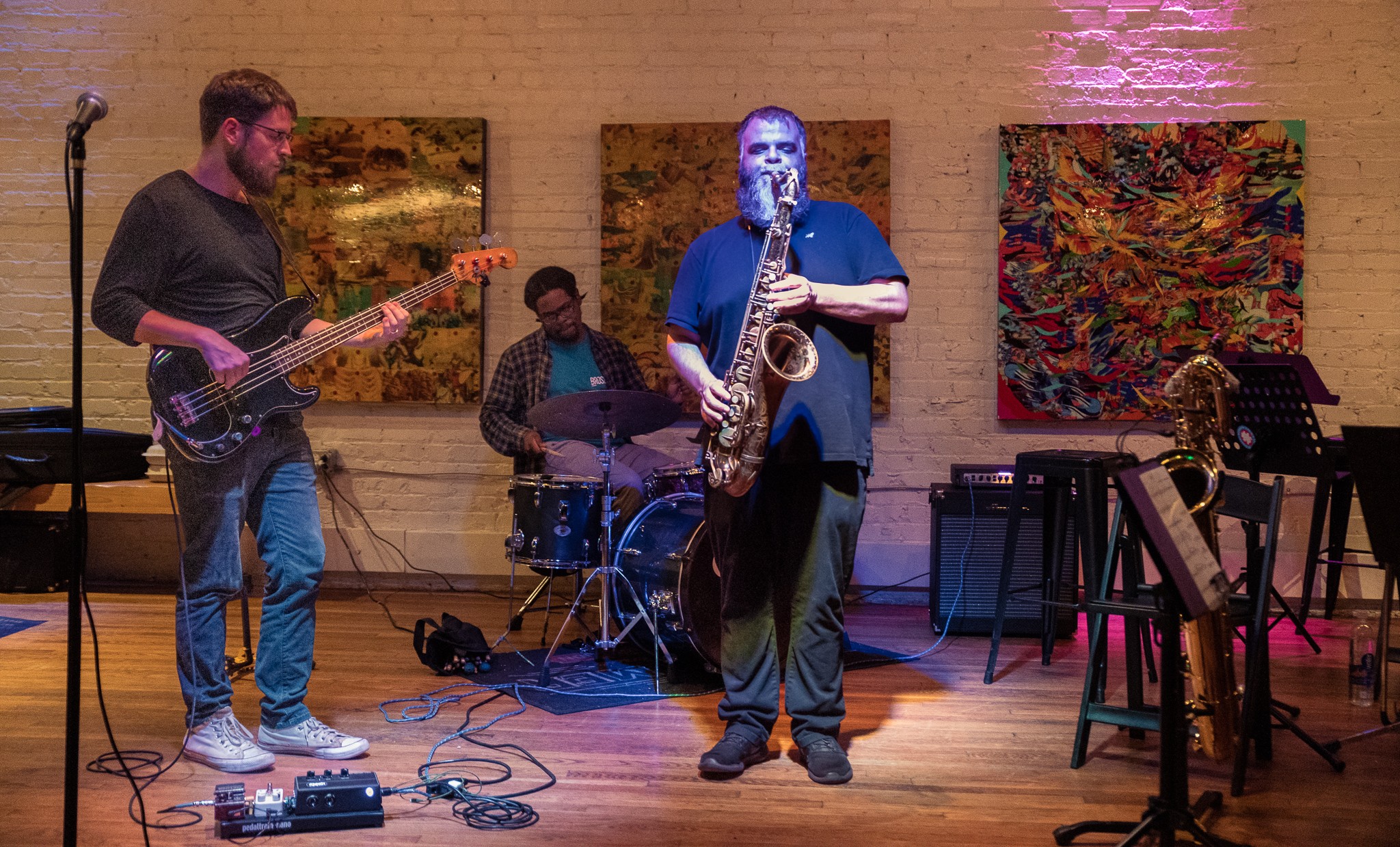 Owens had a weekly residency at New York City’s venerable Small Jazz Club for a dozen years, playing with a who’s who of famous players. But since relocating to Charlottesville, then Richmond, his core trio has included bassist Andrew Randazzo and drummer and multi-instrumentalist Devonne Harris. Both are gaining national renown as two thirds of the rhythmic section of Butcher Brown, but both were starting out when Owens discovered them. Their decade together has forged them into a phenomenally tight, imaginatively agile band.