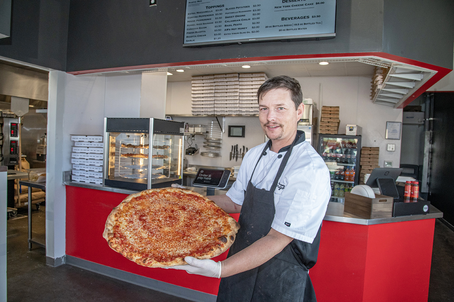 Now that Mungo has secured a brick-and-mortar location with a much bigger kitchen, his menu features 18-inch pies and pizza by the slice. He says that unlike his previous delivery only business, his new spot on the Boulevard offers the opportunity for lots of foot traffic, making it a perfect stop for visitors and residents alike to pop in for a slice.