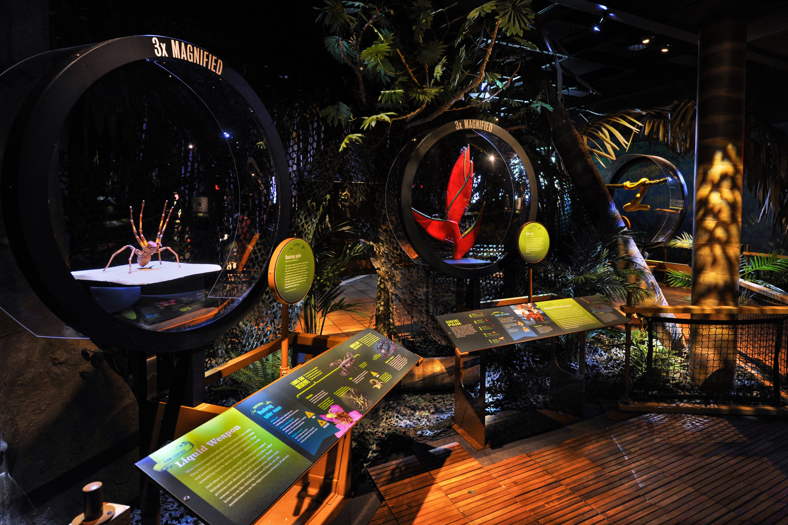 Then it’s on to the dimly lit Choco Forest in Colombia where visitors learn about the role of poison in the natural world. There, poisons are powerful weapons made and used by countless organisms in the struggle to survive, reproduce and fend off attackers ranging from microscopic organisms to insects to vertebrates.