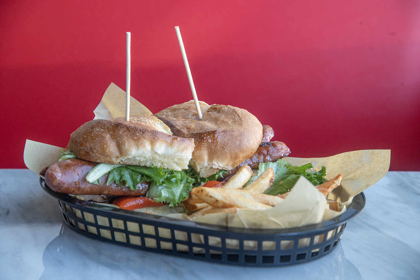 Influencers have proclaimed them the best fries they’ve ever tried and Morse is getting texts from friends raving about the fries first, then his delicious sausages. The crispy, slightly crunchy spuds fall somewhere between a shoestring and a steak fry—they are skin-on and fried fresh to order. “I’m not making them and letting them sit,” he said. “They’re hot and ready and fresh, salted but not overly, and made with fresh oil.” Beyond that, the formula is his special secret.