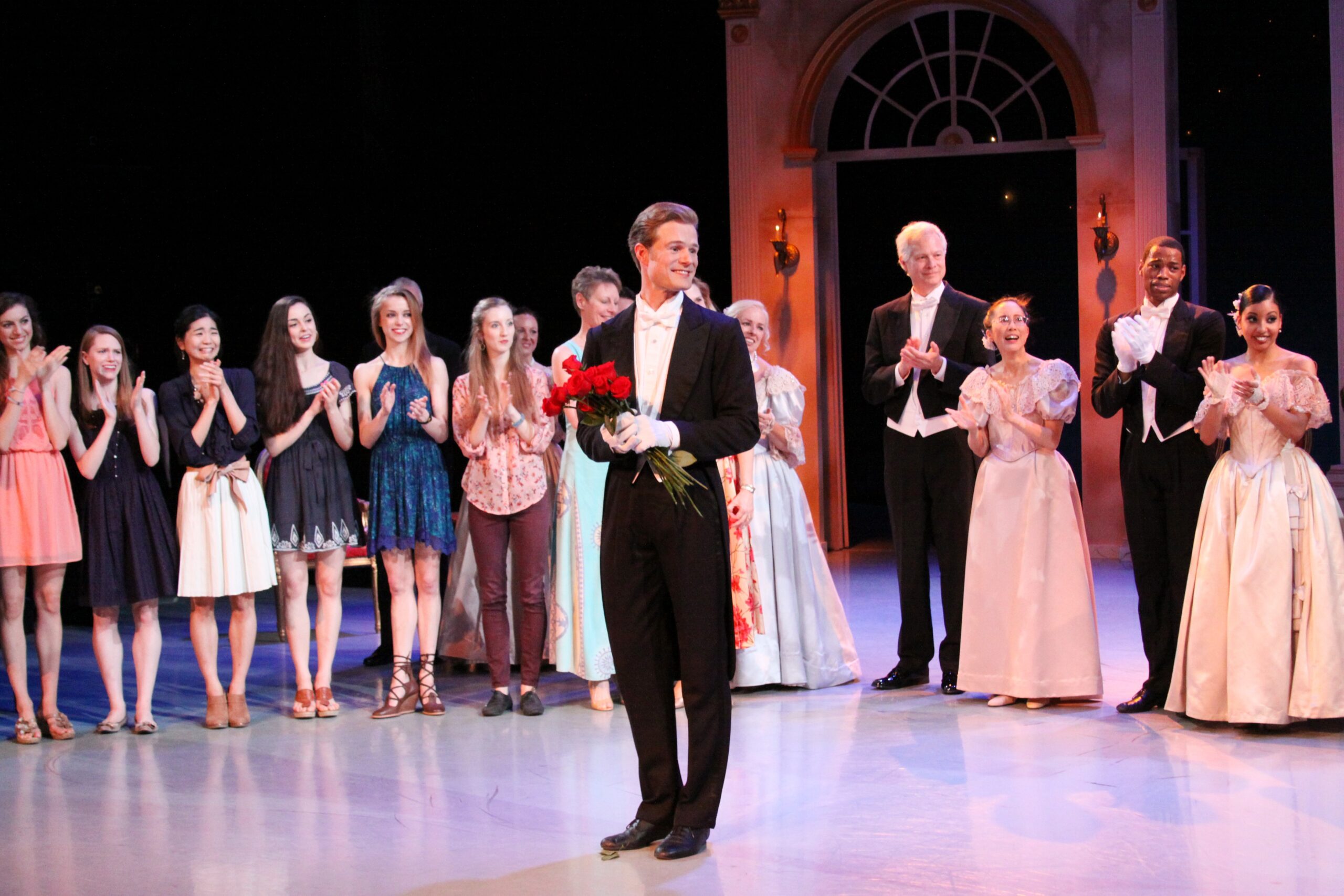 If that wasn’t enough to yank tears from the audience’s eyes, as part of the final bow, each company member and some of the staff at Richmond Ballet ceremoniously presented Skaggs with a red rose. Any holdouts likely caved in when his wife, former Richmond Ballet dancer Katherine Lynch Skaggs, came out with their youngest son in her arms. The older boy peeked out from the wings until Winslett herself carried him out. Skaggs scooped him up and gave him a rose as he scowled at the wildly clapping audience.