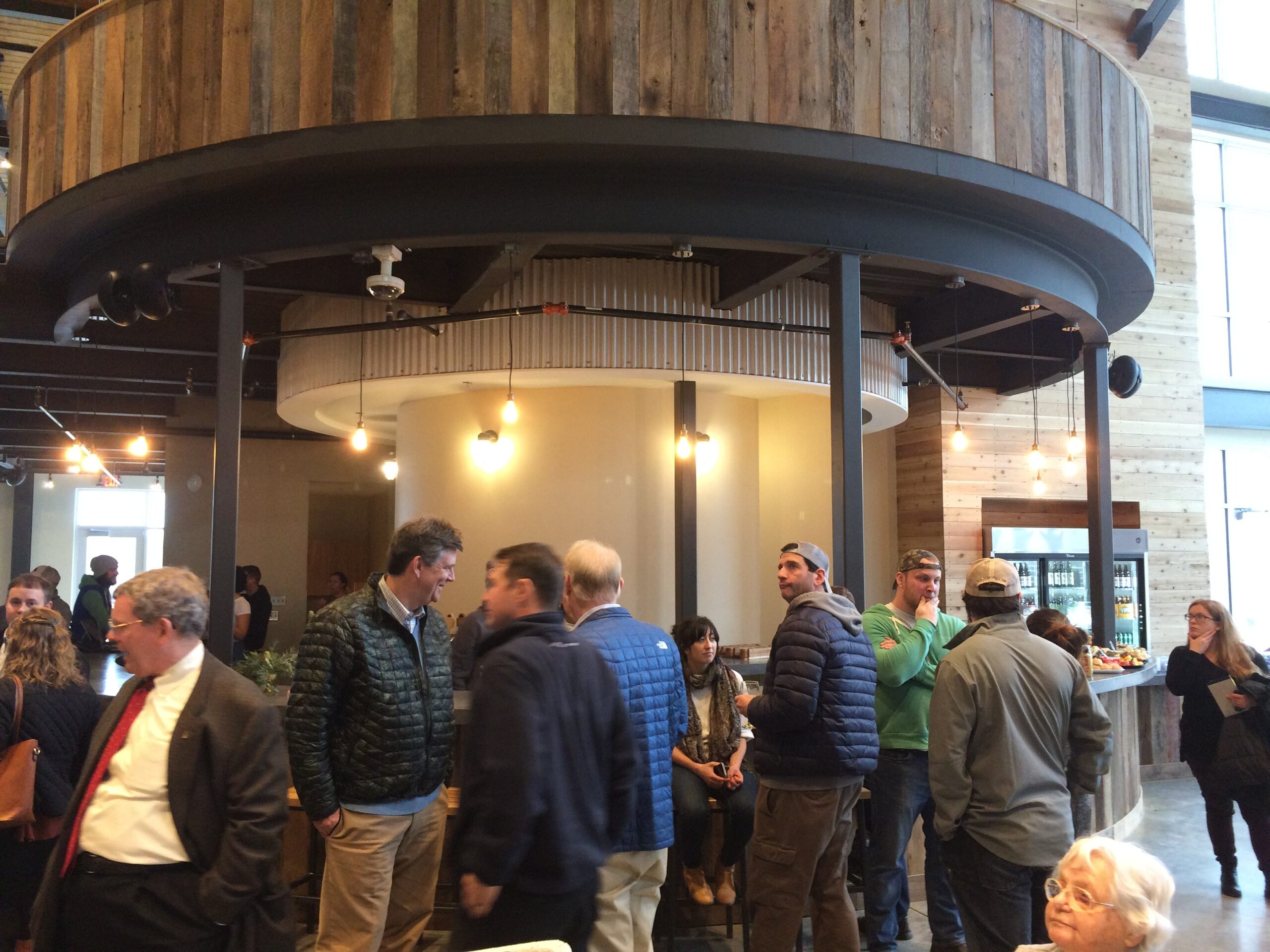 I got my chance to see it at the ribbon-cutting ceremony on Jan. 8. From the outside, the expansive building is reminiscent of a barn: cedar siding with splashes of rich, red-barn color. Given beer’s agricultural base and Hardywood’s emphasis on using local ingredients and vendors, the allusion makes sense.