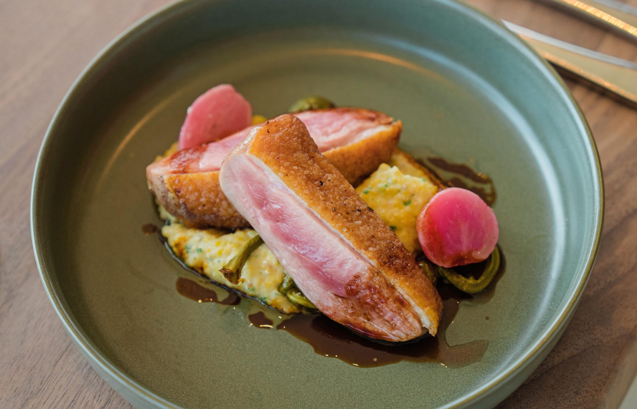 Working in Virginia has been a change for Perkins, although there are similarities that he recognized immediately, such as the amount of farmers markets and the sense of community. “There’s a big learning curve, but there are things I’m excited to work with here like pomegranate, figs, crab, and top water oysters, as opposed to a caged oyster, which are some of the best I’ve had,” he says.