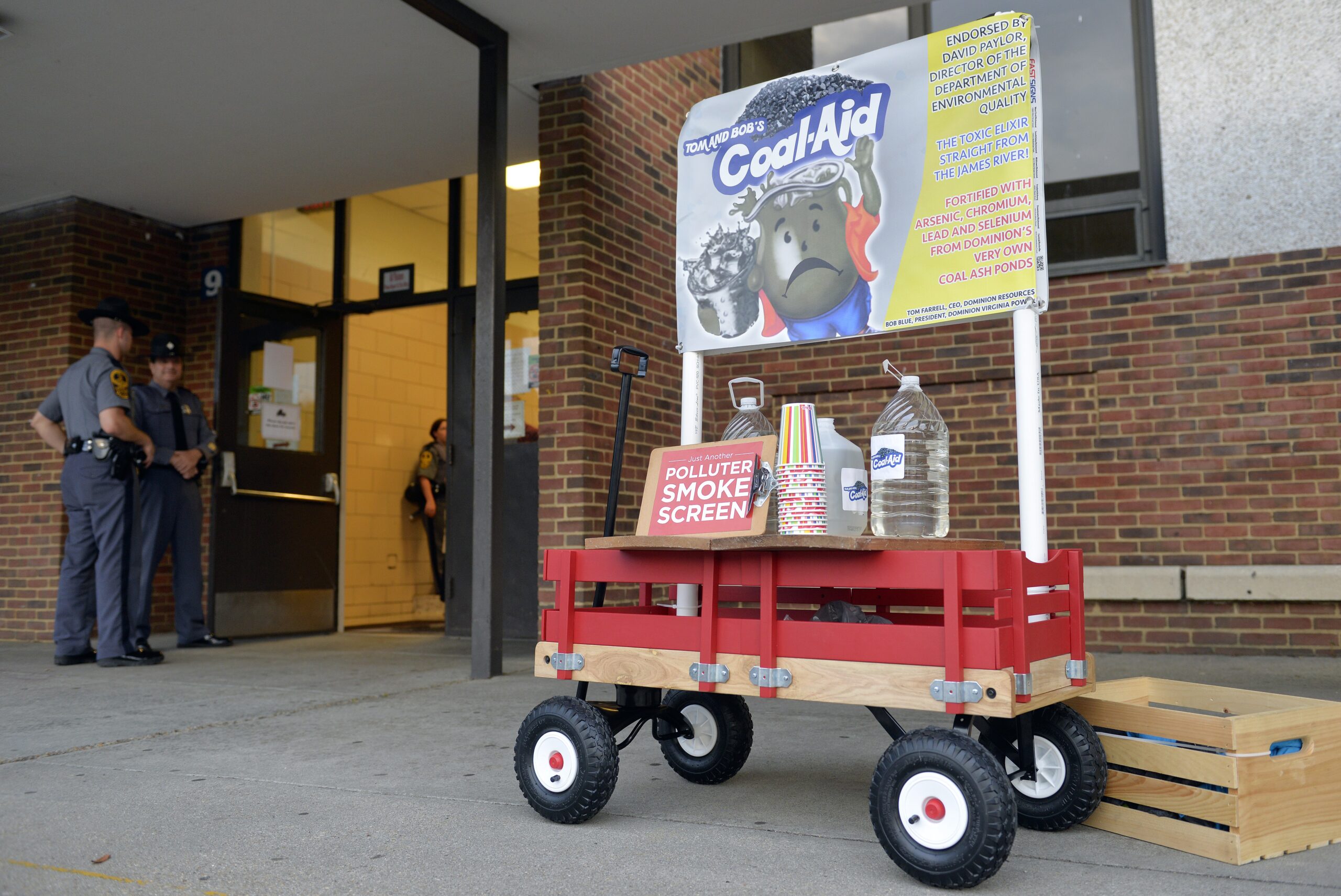 Nearby was a joke exhibit of two gallon jugs of water, dubbed “Coal Aid,” which was said to be the handiwork of Dominion chief Thomas Farrell and DEQ boss David Paylor. The stand offered free drinks of water supposedly cleaned under the standards of Dominion’s proposed permit.