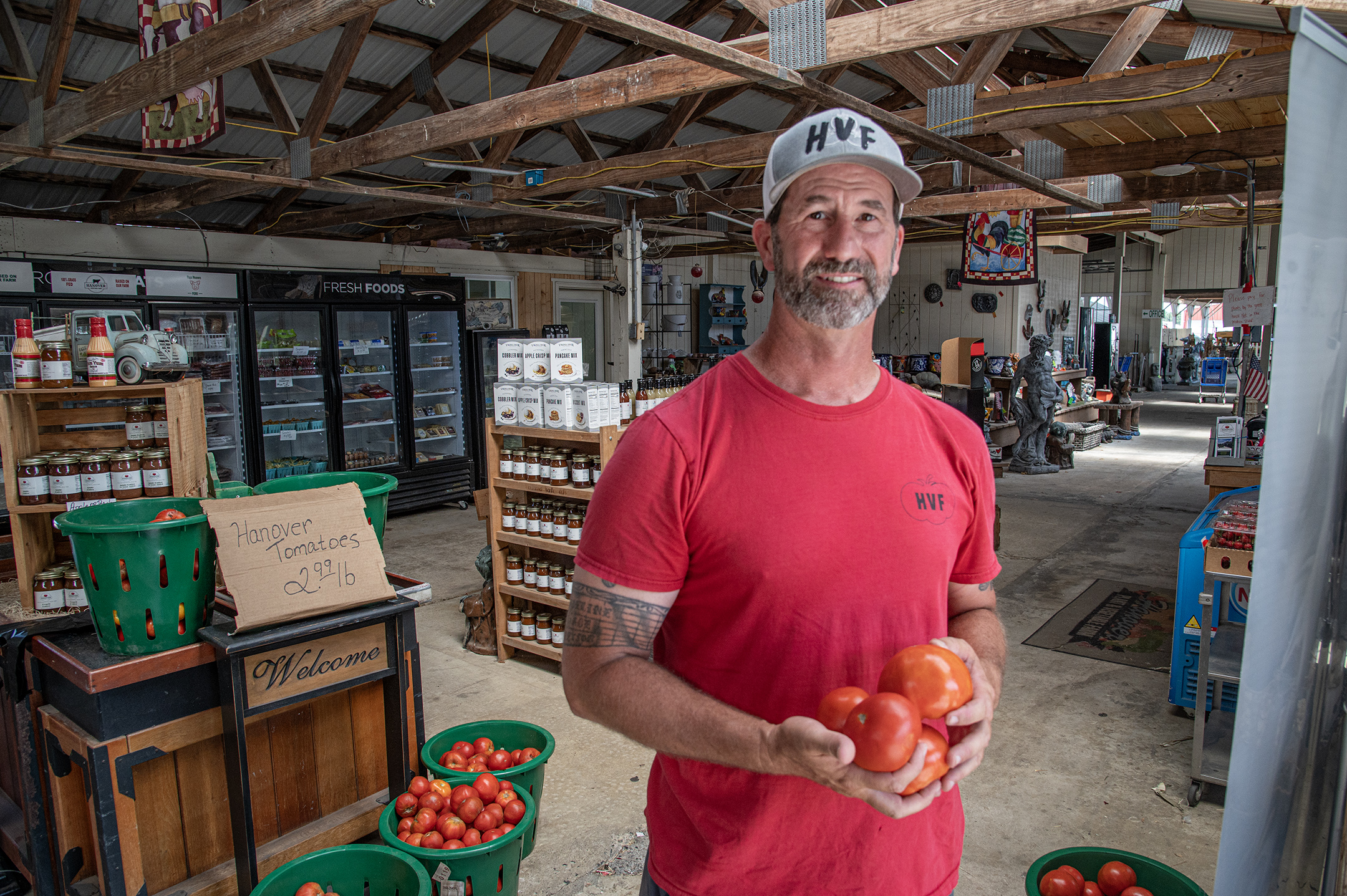 “They’re a little heartier. They can handle this heat,” says Kevin Pond, the farm manager at Hanover Vegetable Farm, which has been growing Hanover tomatoes almost since the Sears family started the operation in 1902. “Us and North Carolina, I think, grow the best tomatoes.”