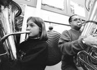 Most of the students who worked directly with the musicians were in music classes, but drama, art and social studies classes participated as well. The theme for the week was “Celebrate, Integrate, Commemorate: The 200th Anniversary of the Lewis and Clark Corps of Discovery Expedition.” The residency was to culminate the following Monday (Oct. 21) with a concert by symphony and student musicians, a student drama production, and student artwork. Due to school closings and concerns about the sniper, however, the program was postponed until Nov. 18. Symphony musicians were able to schedule additional rehearsals with students in the intervening weeks.