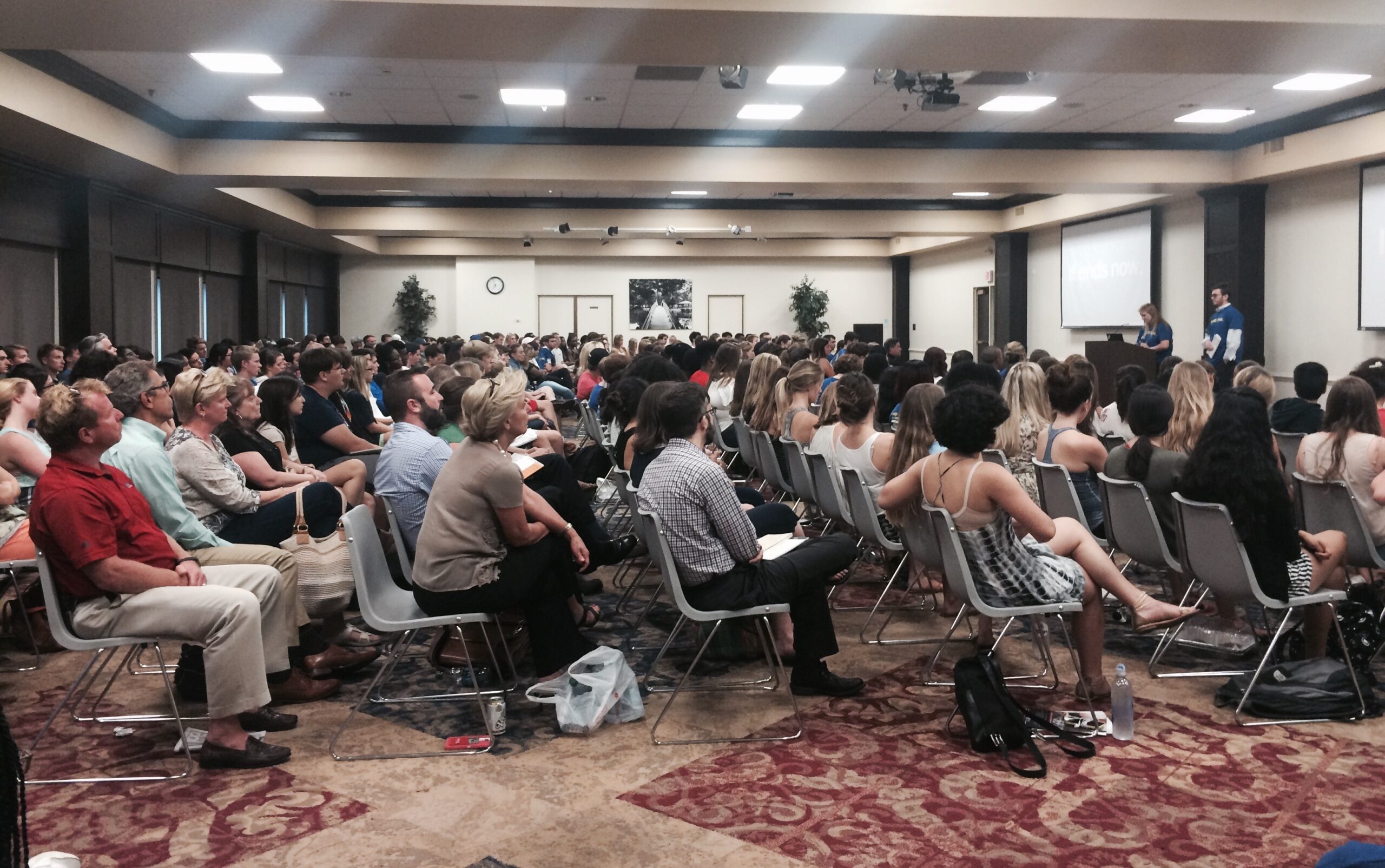 Administrators started off the evening by saying there would be no question and answer session, and that they would entertain questions in another room afterward. But as the prepared program ended, few audience members appeared willing to budge.