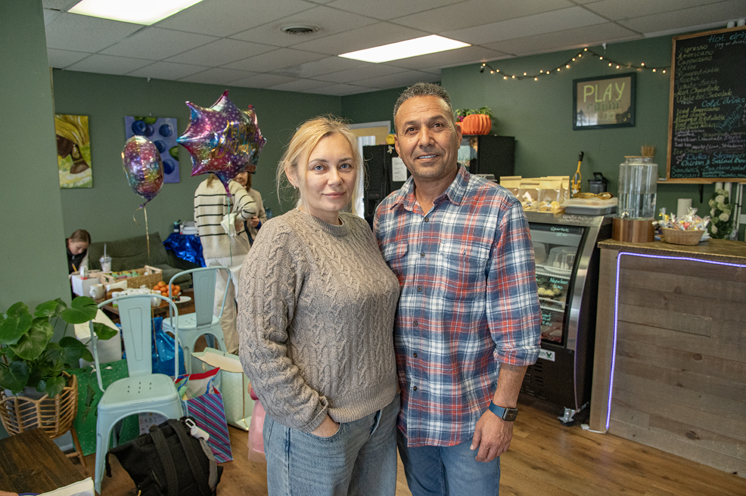 Tania and Ibrahim opened Art Corner last spring, a couple months after arriving in the US with their three kids under a federal humanitarian parole program for Ukrainian refugees. The business draws inspiration from Tania’s love of art, her past experiences as a teacher and dreams of running a cafe and art studio in their twilight years.