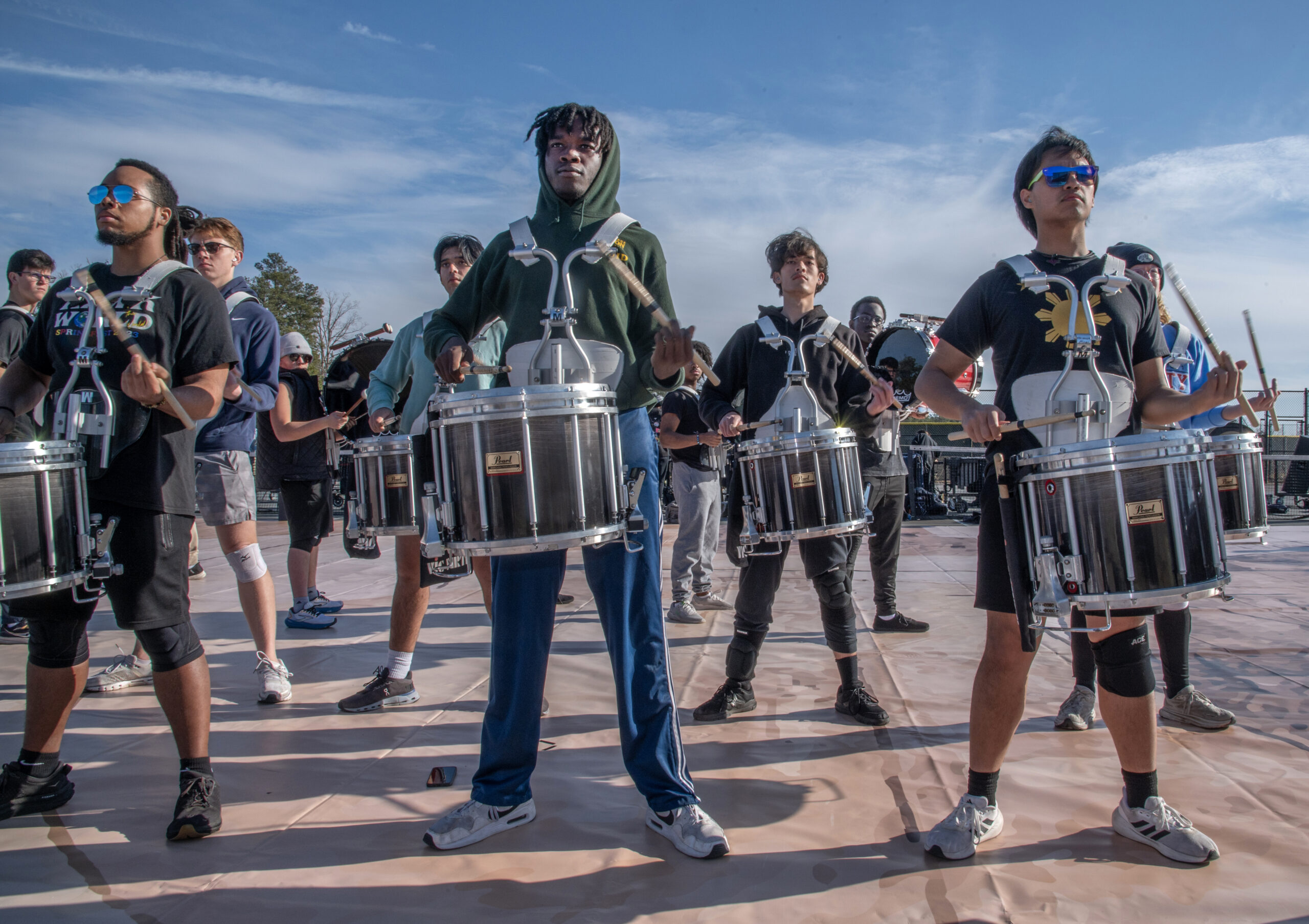 “They come from all over the state, plus places like Maryland and New Jersey,” he says. “We have a big population from JMU and UVA, since neither have an affiliated drumline. Up until last year, Liberty University had its own program but they shut it down. So we’ve taken in some of those members as well.”