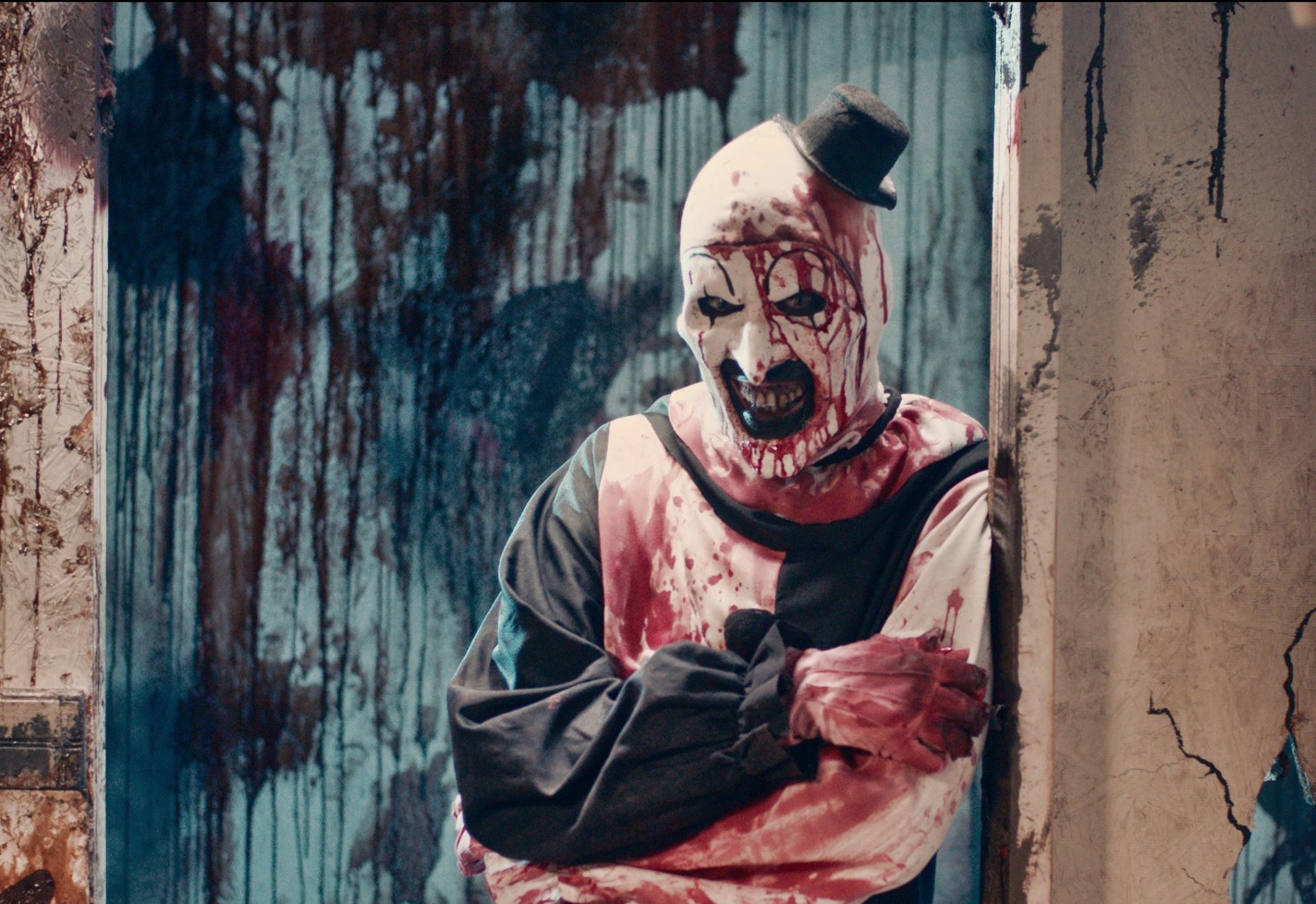 Art the Clown (David Howard Thornton) kills people, mostly attractive teenage girls. Narratively, that’s it. Leone doesn’t give Art an absurd mythology along the lines of a Jason Voorhees or a Freddy Krueger. There are fleeting references to previous massacres, which were not shown in the first “Terrifier” either, but those are to assert Art’s bona fides as an unstoppable killing machine and to impart a pervading impression of confusion and chaos. The girls are given no motivation or backstory either, except for vague gobblety-gook about a father’s legacy of madness that matters so little it doesn’t even rate as a red herring. Think of all the busy plot that a “Scream” sequel will ladle on in order to justify getting to what everyone paid to see: the killing. Leone doesn’t screw around.
