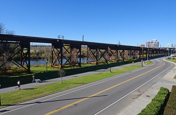 3. Building is underway on the T. Tyler Potterfield Memorial Bridge across the James River for the exclusive use of walkers and bicyclists.