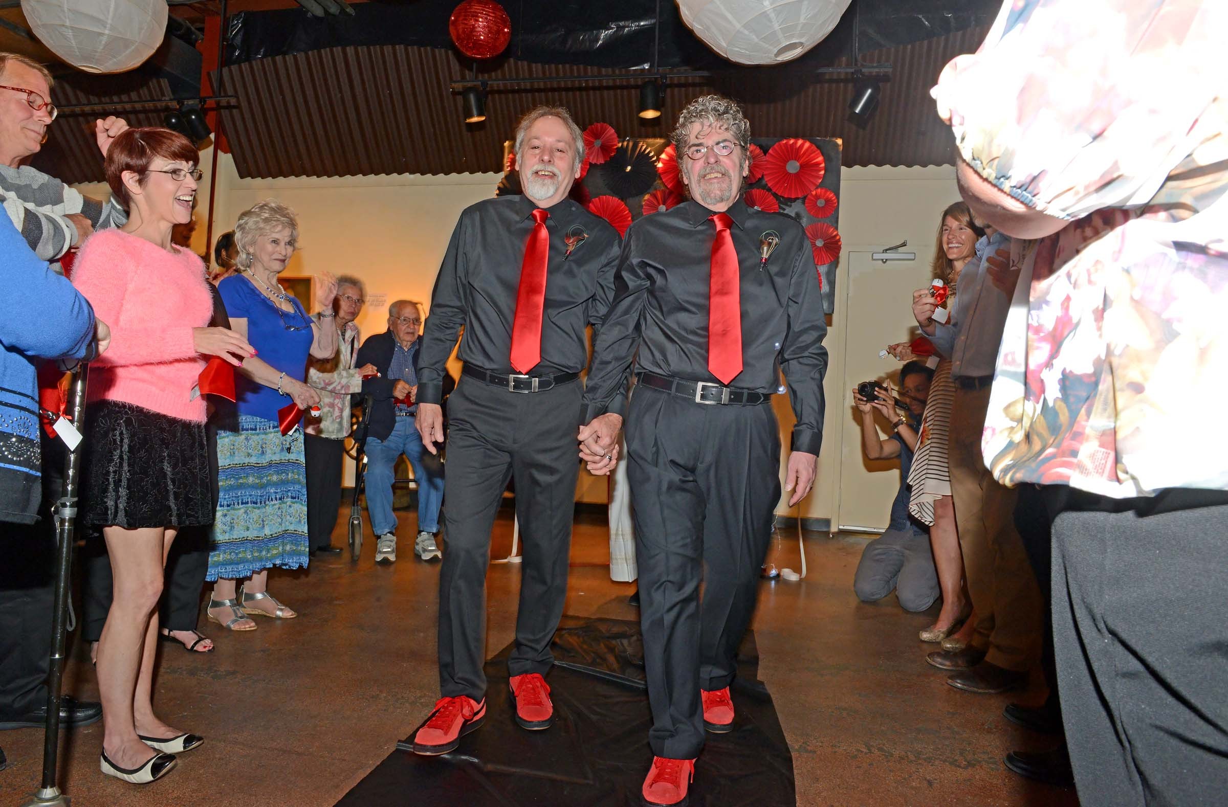After 37 years together, getting married is more of a practical act — taxes, inheritance, medical decisions — than a symbolic one. Still, it’s legal expression of their love and commitment. At the rehearsal, while Cash repeats the words of the Rev. Terry Menefee Gau, he chokes up with his pledge to share with Janosik “all that I have and all that I am.”